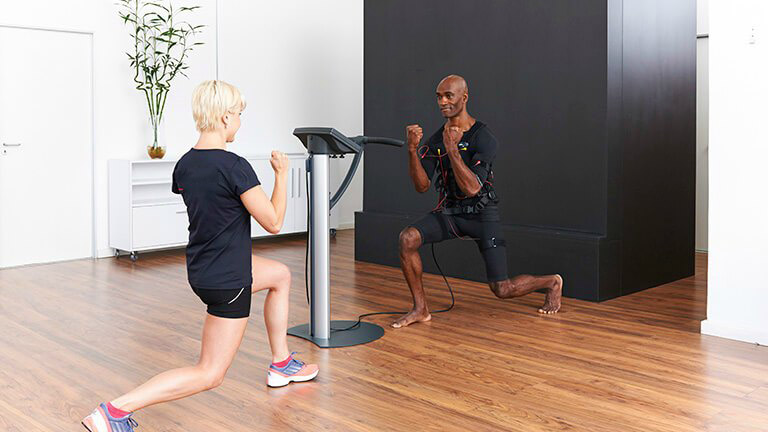 O treinamento com eletroestimulação muscular de corpo inteiro é um bom método para reduzir a dor nas costas generalizada, e também aumenta a força do corpo e possui resultados iguais ou melhores do que os de treinamentos de força convencionais. As melhorias na forma do corpo e humor em geral foram percebidas nos homens e mulheres de todas as faixas etárias similares.